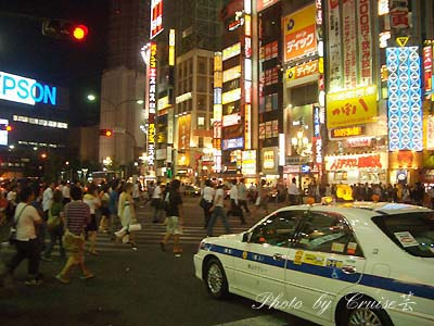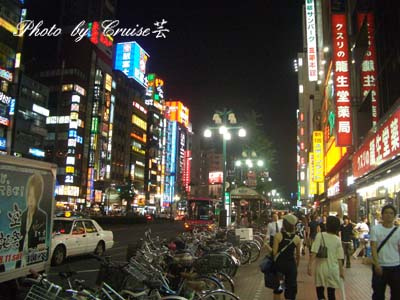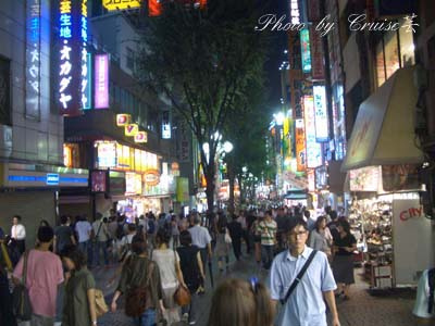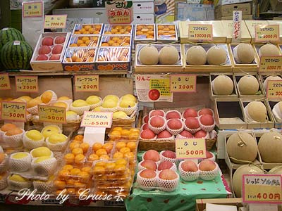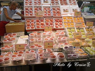 正餐後該吃點水果幫助消化嘍!來日本首選的水果當然就是水蜜桃啦!呵~還讓我在店裡發現了台灣便宜賣、在日本很高”貴”的西瓜和香蕉呢!買完水果,時間也不早了,街頭逛街的人潮少了許多,取而代之的是剛下班要去吃消夜的上班族及去要去歌舞伎町享樂的人,由於JP妹妹告訴我們這邊到了晚上出入份子複雜、治安不太好,所以我們和JP妹告別後,就返回旅館啦!
