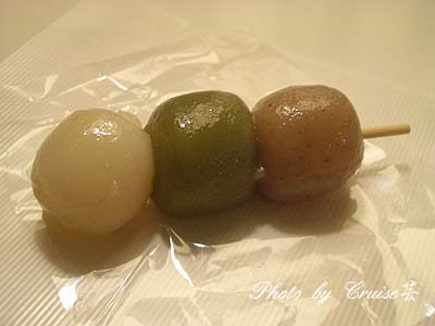 ),今日消夜是香甜多汁的水蜜桃和超好吃的團子,嗚~~因為阿姨他們去買團子時,我正在JP妹家敗家中,沒跟到啦~嗚嗚~~人家好喜歡吃這團子,只有這三顆根本無法滿足我呀!人家好想再吃、好想帶回台灣啦~~殘念..........