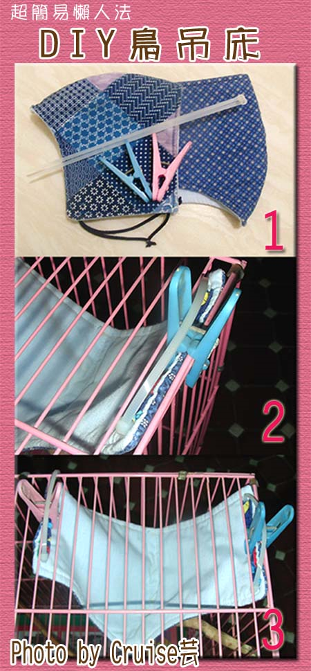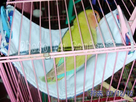 很多鳥友都分享過自己DIY製作鳥用布吊床和布窩的方法,每每看到那些精美的成品和鳥寶貝們滿足的表情,都會有種想試做的衝動。由於有個很會做拼布、針線功很強的娘,因此身為女兒的我,當然對針線活..............完全不行啦!哈哈哈~~要我做袖珍黏土或其他手工藝都OK但就是對拿針縫補及使用縫紉機沒輒,再加上不確定我家小孩們賞不賞臉(之前特別做扭蛋玩具給牠們結果沒一隻肯玩,拿去送人,結果別人家的小孩都很愛玩