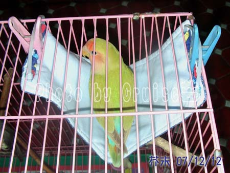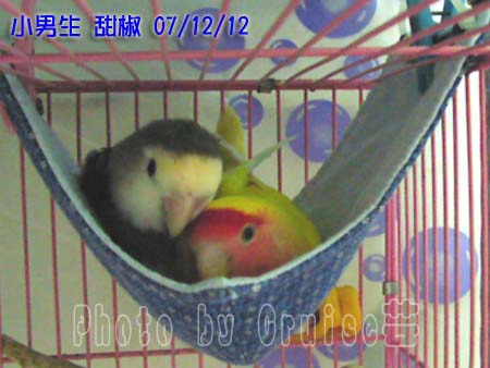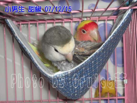 呵呵~有了成品,當然就要有鳥來用,才能顯示它的功能和成果嘛!所以就由我家小男生、甜椒和芥末來為您展示使用。