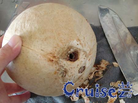一定記得要先修剪再挖椰肉,不然手很容易割傷喔!