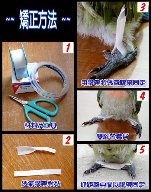4. 矯正期的長短要看鳥的復原情形來決定,約矯正的第一個星期就能明顯看出成效但別因為矯正"有點效果"就半途而廢不然很有可能前功盡棄