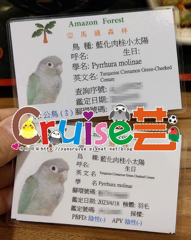 下班去鳥店接Crazy,牠的雙病毒和性別報告出爐,是個健康的小男孩,讚啦!讚啦!是兒子!是兒子!是兒子呀!放炮~~~不必擔心生蛋的兒子呀!太開心了~~歐旬有弟弟了!