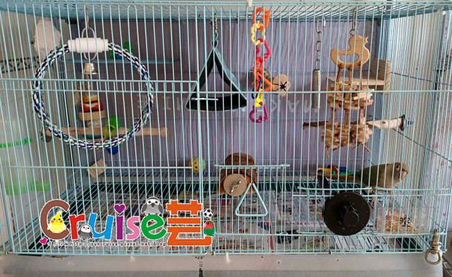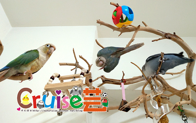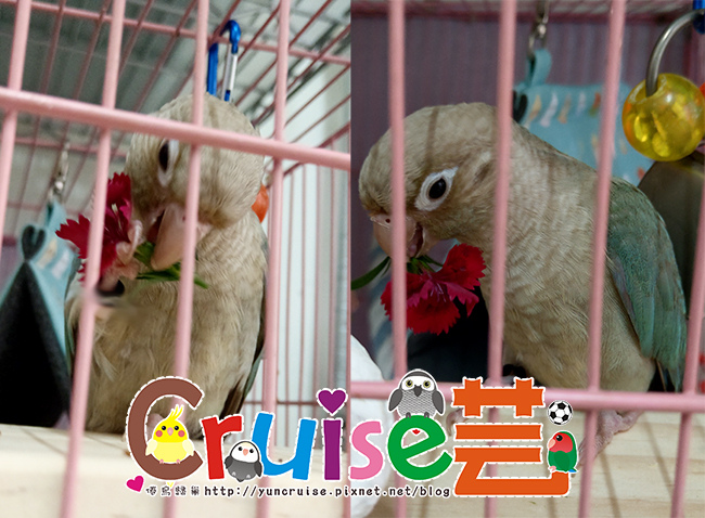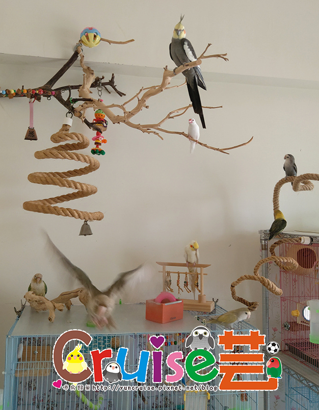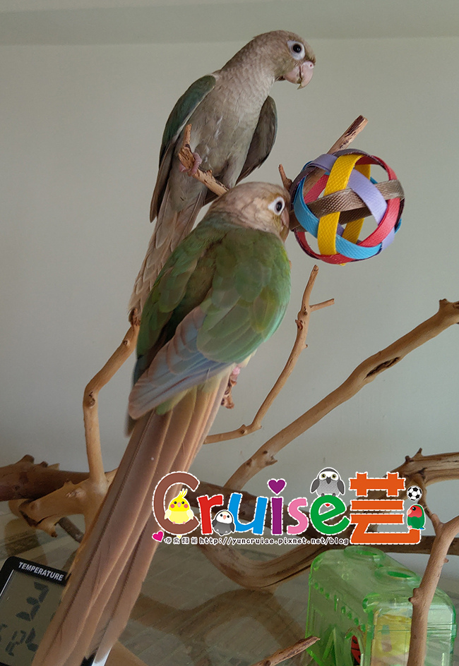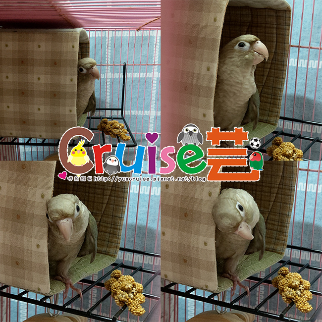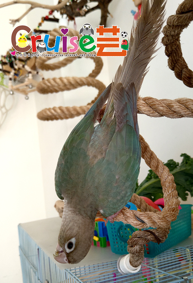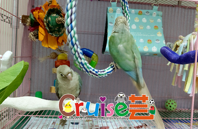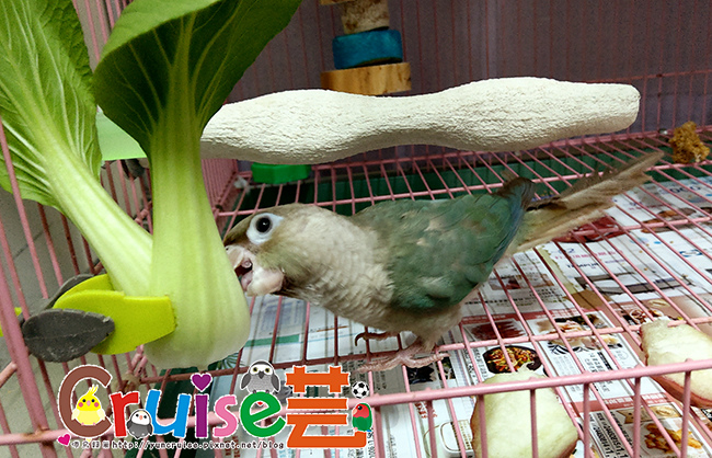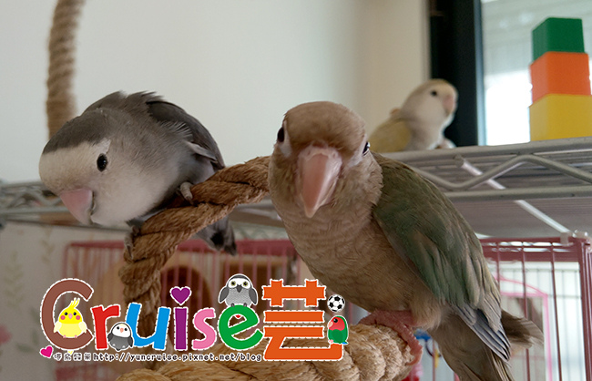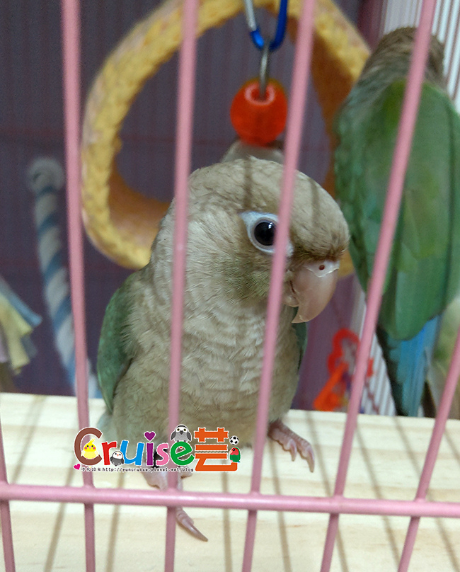 有同伴在,暄適應大籠的速度比第一天獨居快速多了,搗蛋哥哥、玩玩具、睡床床、吃菜、吃滋養丸.....各種鳥生第一次的初體驗。