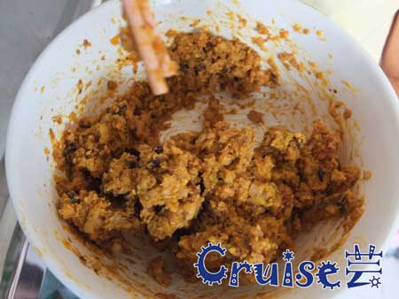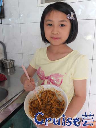這次先以南瓜泥為主把主食材和配角們拌勻混合