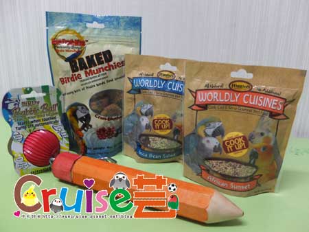 莓果餅乾、熟食、 會發出動物聲的球、 鉛筆造型啃木玩具
